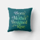 Dekoratives aquamarines Kissen mit dem Zitat "Geboren zu Mutter, entwickelt zum Aufsteigen" in sanften Pastellgraden und grünen Akzenten. Ein gemütliches, stilvolles Geschenk für Mütter und Pflegekräfte.