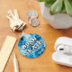 Cooler Skateboarder Schlüsselanhänger mit einem schönen blauen Aquarellhintergrund mit der Formulierung "Geboren zum Skate" in einem weißen, modernen Graffiti-Schriftart.