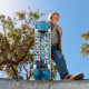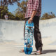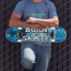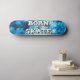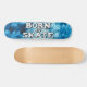 Cooles Skateboard mit einem wunderschönen blauen Aquarellhintergrund mit der Aufschrift "Geboren zum Skate" in einem weißen, modernen Graffiti-Schriftart.