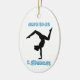 Gymnastik Weihnachtsschmuck - Geboren, ein Gymnast zu sein, bietet eine Silhouette, die eine Pose am Handstand macht, und die Worte "geboren, ein Gymnast zu sein" in einem coolen blauen Schriftart.