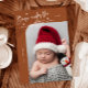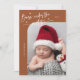 Elegante und moderne Weihnachts-Thema-Geburtsankündigung mit einem handgeschriebenen Text, der "unter dem Mistleton Geboren" steht. Dies ist eine Geburtsankündigungskarte für die Ferienzeit! Fügen Sie Ihre Fotos, Geburtsstatistiken und eine Nachricht hinzu! Der Hintergrund ist Terrakotta.