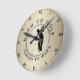 Die sonnige Golffuhr mit einem männlichen Golfer und einem Golfclub, der kurz davor steht, abzusaugen. Sportwanduhr in goldbraunen Farbtönen mit Spaß vom Golf Club Store.