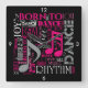 Tanzt eure Leidenschaft? Diese coole Wanduhr mit Wortwolkendesign sagt alles aus. Einige der mit musikalischen Noten vermischten Wörter sind: Atmen, leben, Liebe, Tanz, Rhythmus und geboren tanzen. Diese Version enthält Rosa-, Grau- und Weißtöne in der Hintergrundfarbe Ihrer Wahl. Suchen Sie ID277 um zusätzliche Farboptionen und passende Produkte mit diesem Design zu sehen.
