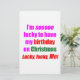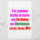Ich habe sooo Glück, dass ich zu Weihnachten Geburtstag habe. Glücklich, glücklich, ich! Sowohl humorvolles als auch sarkastisches Design für diejenigen, die das Glück hatten, an Weihnachten geboren zu sein.