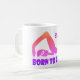 Ein stilisierter Freestyle-Schwimmer, farbenfroh und schattig von Orange über Rosa bis lila, schmückt diese Tasse, mit den Worten GEBOREN zu SWIM. Sie können es mit Ihrem Namen personalisieren.
