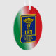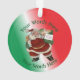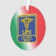 Dieser Weihnachtsschmuck ist auf einer Seite mit dem lizenzierten praktischen Krankenschild dekoriert. Die Rückseite ist mit einem Bild des Weihnachtsmannes mit seinen Goodies-Taschen dekoriert und kann mit Namen, Daten, etc. angepasst werden.