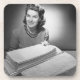 Frau, die am Stapel des gebügelten Leinens und der Tücher (B&W), Porträt | George Kennzeichen | AssetID sitzt: 72131160