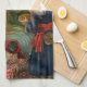 Ein schönes Vintages Weihnachtsküchentuch, das eine wunderbare Nativityszene kennzeichnet.