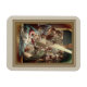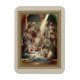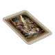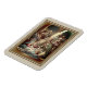 schöne Vintage Aquarellmalerei der Krippe mit Madonna und Kind, Joseph, drei weise Männer mit Geschenken und Menschenmassen draußen, mit einem schönen Lichtstrahl auf den Babyjesus, der seine Hand in einem Gruß an einen der Weisen, der seine Hände im Gebet hat, langer weißer Bart, grüner Kleid, goldener Krone und ein kupfer farbener Kanister als Geschenk, ein anderer weiser Mann mit weißem Turban stehend, der eine Schachtel als Geschenk mit sich trägt, ein anderer stehender, der auch ein Geschenk trägt, Maria hat das Säugling-Handgelenk auf ihrem Schoß und beschützt ihn mit ihrem weißen Kopftuch, alles in einem Gebäude mit Säulen und einer Menschenmenge draußen in der Ferne und einem Mann, der zum Nachthimmel hinaufschaut.