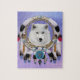 Der Geist des blau-mit Augen Schneewolfs erscheint im Traumfänger - Hoffnung, Glauben, Liebe und Leidenschaft für alle symbolisierend, die ihren Träumen folgen.