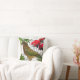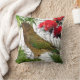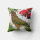 Ein Kissen mit einem gebürtigen Vogel Neuseelands, das Kea, auf ihm, zusammen mit gebürtigen Pflanzen und Blumen.