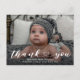 Modernes Foto Baby Geburtsankündigung Postcard. Design mit Dankeschön-Skript, Single-Foto des Babys, Geburtsstatistiken, Datum und einen Namen auf der Vorderseite. Personalisieren Sie mit einem anderen Foto und Ihr Dankeschön Nachricht auf der Rückseite.