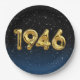 Goldene Jahrtagsballons für 1946 Geburtstag auf schwarzem und blauen Hintergrund mit Sternen.