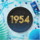 Goldfolienballons für 1954 Geburtsjahr auf Gradientenschwarz und blau Hintergrund mit Nachtstars für Geburtstagsparty.