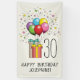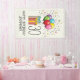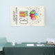 Geburtstags-Thema Design mit bunten Geburtstagsballons und zwei Geschenkschachteln mit hübschen Bögen verpackt. Das Design ist gerahmt von fröhlichen Konfetti aus Sternen und Punkten. Die Farbpalette umfasst Rot, Rosa, Blau, Gelb, lila, aquamarin und Beige. Es gibt auch zwei personalisierbare Textbereiche, in denen einer für das Alter der Person und ein anderer für den benutzerdefinierten Text bestimmt ist.