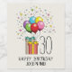 Desteis originelles Geburtstagsdesign mit bunten Geburtstagsballons und zwei Geschenkschachteln, die mit hübschen Bögen umhüllt sind. Das Design ist gerahmt von fröhlichen Konfetti aus Sternen und Punkten. Die Farbpalette umfasst Rot, Rosa, Blau, Gelb, lila, aquamarin und Beige. Es gibt auch zwei personalisierbare Textbereiche, in denen einer für das Alter der Person und ein anderer für den benutzerdefinierten Text bestimmt ist.