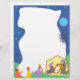 Die drei Könige, die den Babyjesus besuchten und in einem Manöver mit seinen Eltern Maria und Joseph saßen, um sich anzuschauen. Schöne Weihnachtsbriefe Seite Rand Design.
