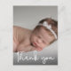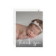 Personalisiert mit dem Foto Ihres Mädchens auf der Vorderseite und einer besonderen Nachricht auf der Rückseite. Dieses Design nutzt einen handgezeichnet Script-Schriftart für eine Touch von Eleganz. Äußern Sie Ihre Begeisterung, wenn Sie die Geburt Ihres Kindes ankündigen, und senden Sie gleichzeitig Ihre Dankbarkeit. Die Worte "Danke" Overlay sind in einem modernen, weißen Schriftart.