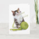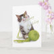 Kleine Kätzchen spielen mit Garn, die innere Botschaft ist ermutigend und sagt, dass man nur so alt ist wie man fühlt, akute Geburtstagskarte für jeden