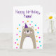 Geburtskarte für Papa. Wenn du deinen Vater Papa anstelle von Vater anrufst, ist diese Geburtstagskarte für ihn perfekt. Ihre Papa wird das niedliche, moderne, farbenfrohe, skandinavische Design dieser Geburtstagskarte mit einem braunen und grauen Teddybärchen mit einem lila Hut aus Party und Krawatte, Rosa, Gelb und Blau mit dem Text "Glücklicher Geburtstag, Papa!" Liebe geben. Machen Sie diese Karte anpassbar! Klicken Sie auf "Design bearbeiten", "Unten/Rechts: Text & Bilder", "Text" und "Text hinzufügen", um Ihre eigene, personalisierte Nachricht in Papa inside zu schreiben!