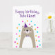Geburtskarte für Tutu Kāne. Wenn du deinen Großvater Tutu Kane anstelle von Opa anrufst, ist diese Geburtstagskarte perfekt für ihn. (Tutu Kāne bedeutet Großvater auf Hawaiisch.) Ihr Tutu Kāne wird das niedliche, moderne, farbenfrohe skandinavische Design dieser Geburtstagskarte mit einem braunen und grauen Teddybären-Cuben mit einem lila Party-Hut und Kobold, Rosa, Gelb und Blau-Konfetti mit dem Text "Glücklicher Geburtstag, Tutu Kane!" Liebe geben. Machen Sie diese Karte anpassbar! Klicken Sie auf "Design bearbeiten", "Unten/Rechts: Text & Bilder", "Text" und "Text hinzufügen", um Ihre eigene personalisierte Nachricht an Tutu Kāne zu schreiben!