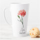 Die Blume Januar Carnation latte Tasse zeigt eine wunderschöne Abbildung einer Nelkensorte Blume. Unter der Blume befindet sich ein benutzerdefinierbarer Name "Amalia", der in elegantem Schriftart geschrieben ist. Unter dem Namen steht "Januar - Nelke", was darauf hinweist, dass ihre Blume die Nelke ist. Es ist ein hübscher personalisierter Schlamm, wahrscheinlich ein nachdenkliches Geschenk für jemanden, der im Januar geboren ist.