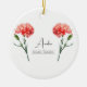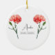 Der Geburtsmonat Blume Januar Nörglerornament zeigt eine wunderschöne Abbildung einer Nelkensonde-Blume. Unterhalb der Blume gibt es einen anpassbaren Namen, der in elegantem Skript-Schriftart geschrieben ist. Unter dem Namen steht "Januar - Nelke", was darauf hinweist, dass ihre Blume die Nelke ist. Es ist ein schönes personalisiertes Ornament, ein nachdenkliches Geschenk für jemanden, der im Januar geboren ist.