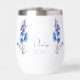 Blume zum Geburtstag Juli Larkspur Weintumbler mit einer Illustration einer Larkspur-Blume. Unter der Blume wird der Name in einem stilvollen Script-Schriftart geschrieben. Unter dem Namen wird "Juli - Larkspur" Staaten, was darauf hinweist, dass der Geburtsmonat des Besitzers Juli ist und ihre Blume die Larkspur ist. Es handelt sich um einen personalisierten Weinhändler, der als nachdenkliches Geschenk für jemanden geboren im Juli geschaffen wurde.