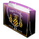 Eine elegante und glamouröse Geschenktasche für einen 21. Geburtstag. Ein gürtelrosa, lila und schwarzer Farbverlauf und ein goldener Rahmen für Imitate. Die Einrichtung besteht aus 3 goldenen tropischen Ananas. Mit dem Text: Happy Birthday. gebogene Hand Schrift/Text im Stil. Vorlagen für das 21. Lebensjahr, Geburtsdatum und Jahrestag. Weiße Buchstaben.