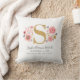 Ein schöner, eleganter Keepsake-Baby-Geburtsstatus wirft Kissen. Dieses Kissen verfügt über einen vergoldeten Anfangsbuchstaben S mit hübschen rosa Blume. Der Name des Babys ist unten in handgeschriebener Schrift Typografie geschrieben, gefolgt von Geburtsdatum und Geburtsstatistiken des Babys. Die Rückseite des Kissens ist massiv rosa. Eine schöne Ergänzung zum Kinderzimmer des Babys! Entworfen für Sie von BlackBerry Boulevard.