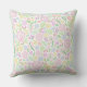 Geburtsstats Baby Girl Blumenwirbel Kissen. Blumenmonogramm mit Geburtenstatistiken auf der Vorderseite und Blumenmuster mit Rose, Knospen, Beeren, Blätter auf der Rückseite. Pastellfarben (Rosa, Grün, Korallen, Lila, lila, Blau, Gelb). Grüne Grenze.