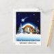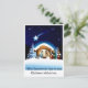 Diese Postkarte ist von der heiligen Familie. Mutter Maria zeigt dem Lamm den Jesus-Säugling, während Joseph auf Mutter und Kind schaut. Auf der Rückseite steht: Wir wünschen Ihnen die Gaben des Glaubens, der Hoffnung und der Liebe zu Weihnachten und immer. Diese Postkarte ist eine wahre Darstellung dessen, worum es bei Weihnachten geht; der Geburt Jesu.