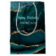 Personalisieren Sie den Namen in Weiß und Happy Birthday (oder Nachricht) auf Aquamarin, Gold und Black Agate Design.