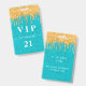 Geburtstag aquamariner Glitzer Tropfen Vip Einladu Ausweis