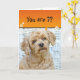 Niedliches braunes Poodle mit Gänseblütenstühlen zum 7. Geburtstag, Text kann für jedes Alter Geburtstag gewechselt werden.