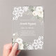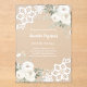 Für eine elegante Meilenstein Geburtstagsfeier (jedes Alter). Ein durchsichtiger, heller Hintergrund mit weißen Blumen, Rose und Spitzen. Personalisieren Sie Ihren Namen und Ihre Party-Daten und fügen Sie diese hinzu.