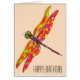 Geburtstagskarte mit Dragonfly-Originalgrafik der Künstlerin Sacha Grossel mit neongemalten Dragonfly-Insekten. farbenfroh und lebhaft