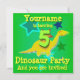 Laden Sie alle Ihre Freunde zu Ihrer 5-jährigen Geburtstagsparty mit dieser bunten niedlichen Geburtstagsfeier ein. Ein niedlicher Cartoon Dinosaurier gelber Diplodocus und Farbsterne mit eigenem Text: "Yourname" wird 5, es gibt ein Dinosaurier Party und Sie sind eingeladen! Auf der Rückseite ein fröhliches Dinosaurier-Party in einer prähistorischen Steinzeitlandschaft mit Bäumen, Bergen und Vulkanen mit Farbstern und anpassbarem Text: Veranstaltungsdatum, Party, Party-Adresse und R.S.V.P. zu und Telefon#. Diese coolen Dinosaurier-Party-Einladungen sind vollständig anpassbar, fügen & personalisieren Sie mit Ihren Texten und Bildern! Eine großartige Dino-Party Einladung für den kleinen Dinosaurier-Fan!