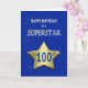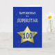 Geburtstagskarte für einen Superstar. Ein großer goldener Stern, der das Alter trägt, schwimmt in den Himmeln. Im Hintergrund blinken die Sterne. Eine tolle Geburtstagskarte für jemanden, der ganz besonders ist.