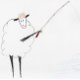12x18 Landschaftsgrüßkarte - Angelschaf zum Geburtstag - Ein Schaf mit Angelpfahl und einem niedlichen kleinen Eimerhut. Es genießt sich ganz klar. Ideal für die Person in Ihrem Leben, die gerne angeln, oder Schafe, oder beides! Original zeichn ist ein farbiger Bleistift auf Papier, der eingescannt und auf der Karte platziert wird.