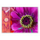 Geburtstag für Mama, Lila Zinnia Blume. Foto einer lila Zinnia-Blume mit dem Wort MAMA auf der links Seite. Ein kleines weißes Element wird in den Buchstaben O. Art, Bild und Vers © Copyright Shoaff Ballanger Studios platziert.