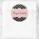 Rosa, schwarz und weiß Geburtstag süße 16 Aufkleber-Etiketten in einem stilvollen und trendigen niedlichen Design, das schwarz-weiß Polka Punkte und ein Emblem, das Sie personalisieren können, dass Happy Sweet 16
