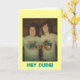 Coolen Typ aus den 70er Jahren, die ihre neuen eisernen T-Shirts auf dieser Grußkarte zeigen.