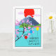 Text auf der Vorderseite ist Happy Birthday geschrieben in Japanisch, Otanjoubi omedetou gozaimasu! Farbenfrohe Geburtstagsballons, Kirschblüten, der Fuji Berg und die rote Sonne sind auf dem Kartendeckel zu sehen. Bleib drinnen für deine persönlichen Grüße. Bild und Vers ©Shoaff Ballanger Studios, 2023.