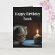 Herzlichen Glückwunsch zum Geburtstag Individuelle Name mit einem niedlichen Kätzchen, das auf einen Kuchen und Kerzen starrt