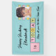 Jegliches Party-Banner. Fügen Sie ein Foto, Name und Alter hinzu. Das Alter der Proben beträgt 16 Jahre. Rosa, Türkis, Schwarz, Gelb und Grün.