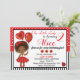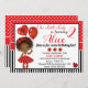 Ladybug Geburtstagsfeier Einladung. Das Design ist in Rot, Schwarz und Weiß gehalten, mit einem niedlichen Afroamerikaner-Mädchen im ladybug-Stil, das Luftballons hält. Ideal für ein kleines Mädchen Geburtstagsfeier. Sie können den Text einschließlich Alter personalisieren.
