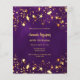 Eine moderne, stilvolle und glamouröse Einladung für eine 40. Geburtstagsfeier (oder jedes Alter). Ein tiefer lila Hintergrund mit Imitaten goldenen Sternen. Die lila Farbe ist ungleichmäßig. Der Name ist mit einem modernen handgeschriebenen Stilskript geschrieben. Personalisieren Sie Ihre Party-Daten und fügen Sie sie hinzu. 1 Blatt = 1 Einladung mit Druckkante bis Kante.
