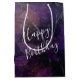 Geburtstag Lila Leaf auf schwarz Mittlere Geschenktüte
