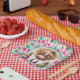Eine farbenfrohe Mädchen-Geburtstags-Papierplatte mit quirligem Mädchen in der Mitte mit Geburtstagskuchen